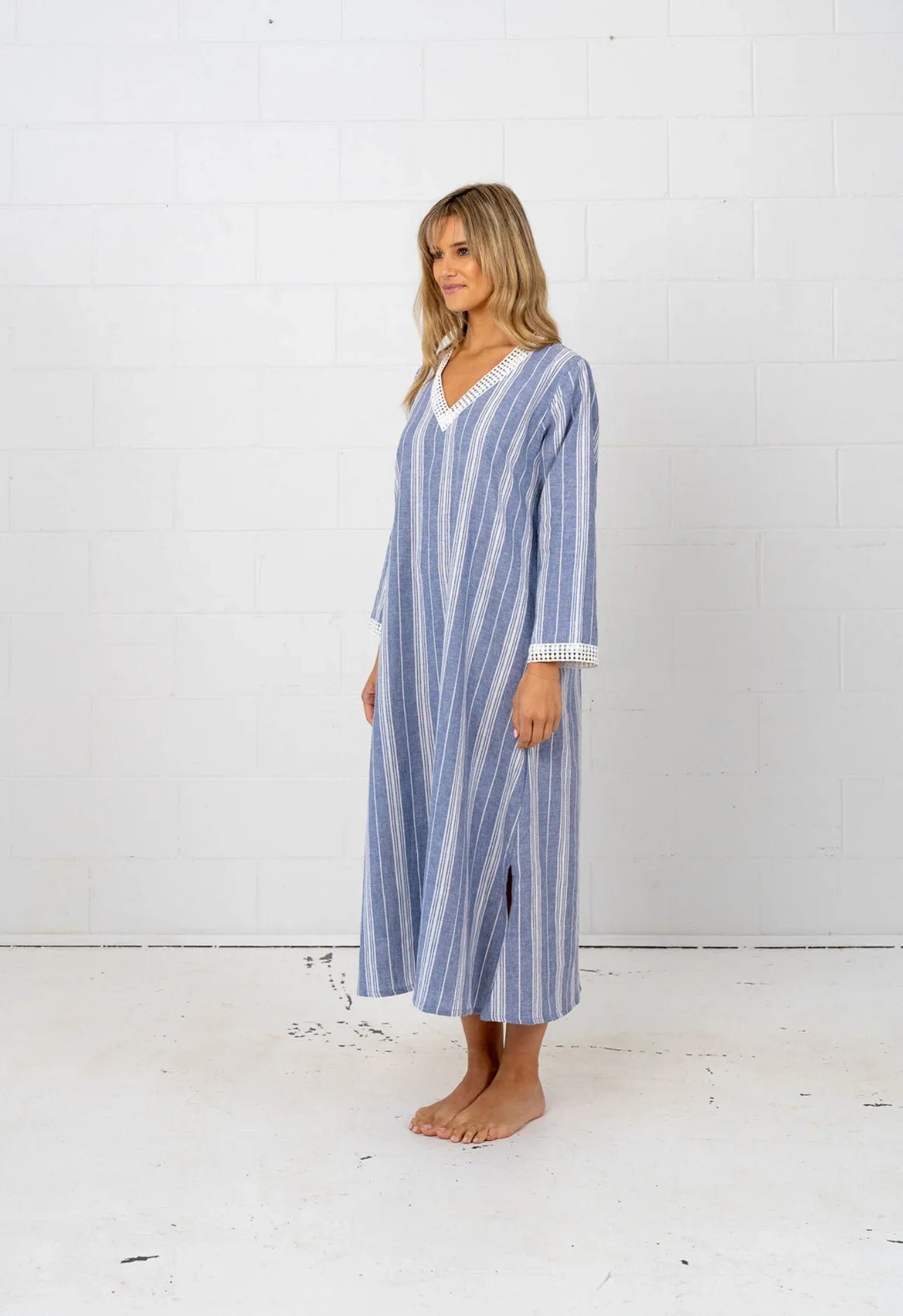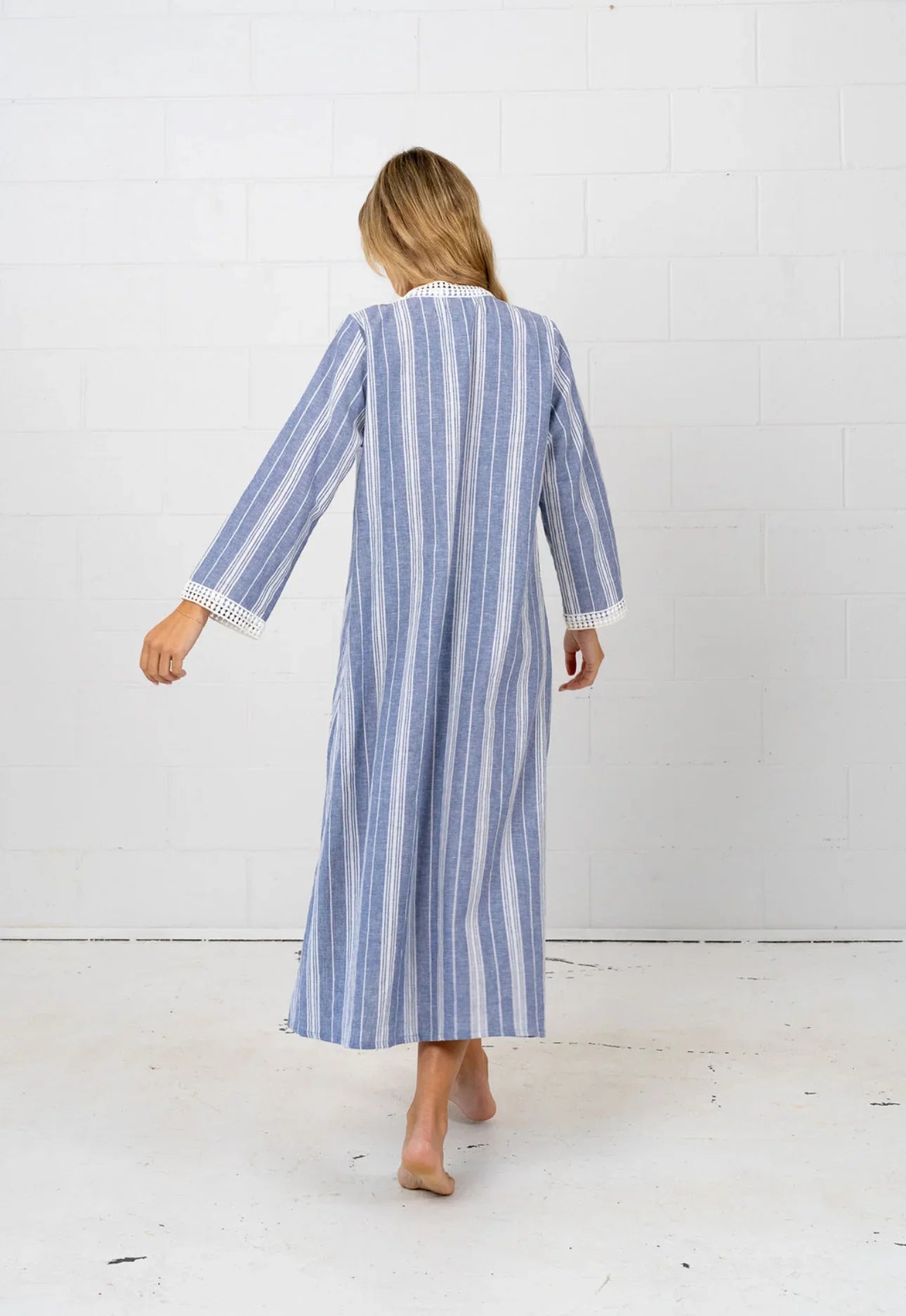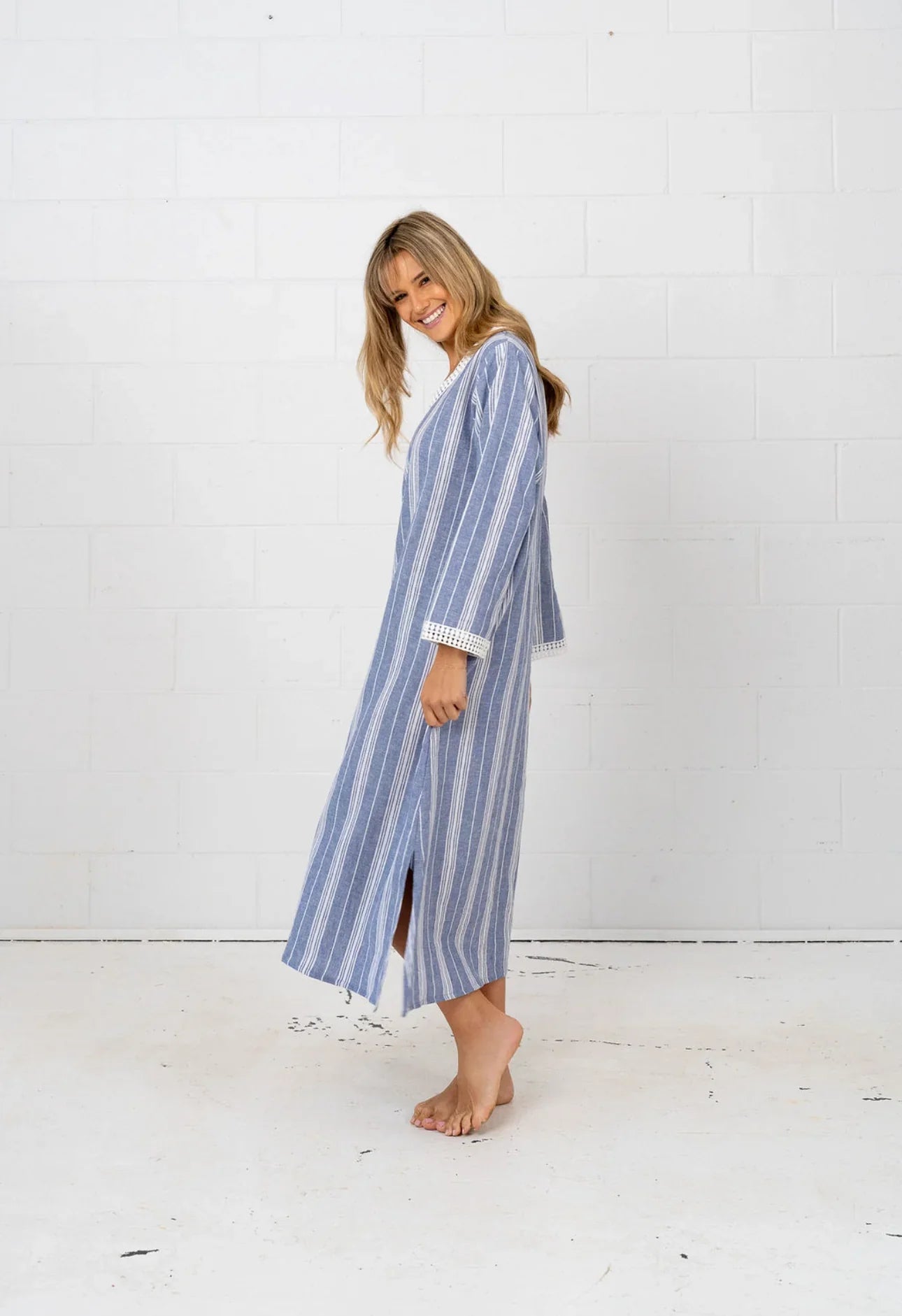 Sail into summer with the Marnie. Luxuriously soft Linen & cotton blend , classic stripes. Maxi chic, perfect for beach to bar.