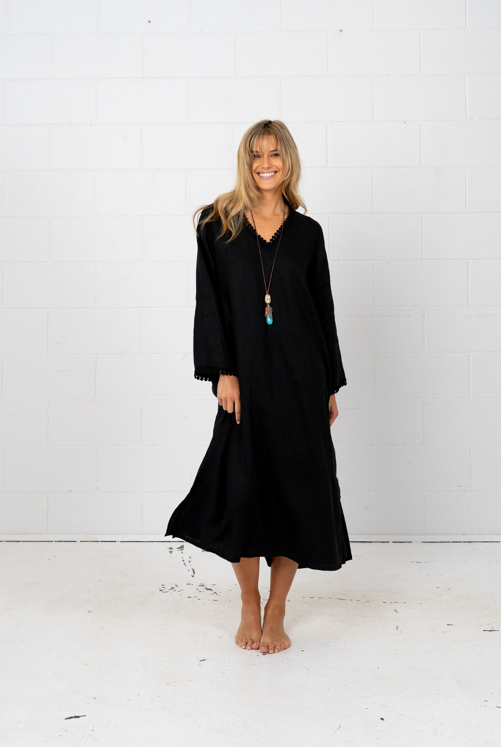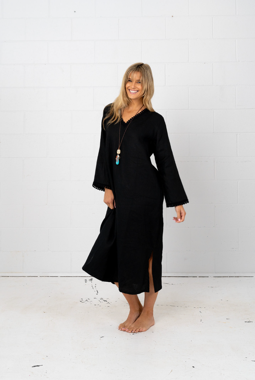 Sail into summer with the Marnie. Luxuriousl 100% Flax Linen & classically chic. Maxi length, perfect for beach to bar.
