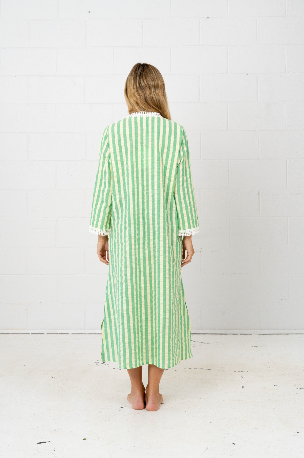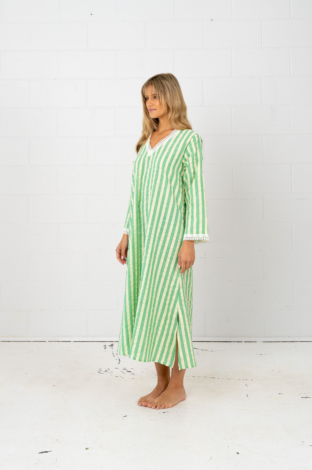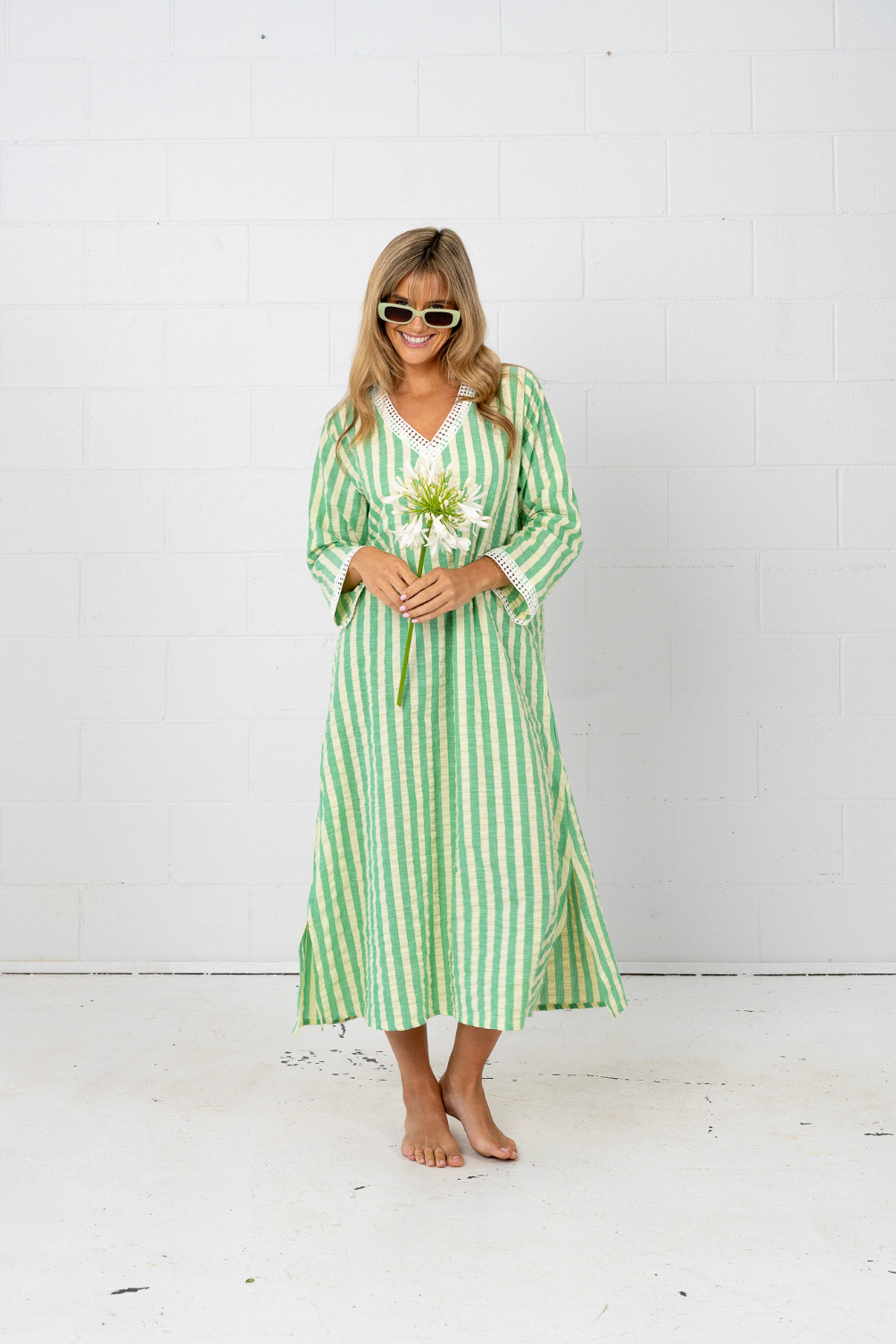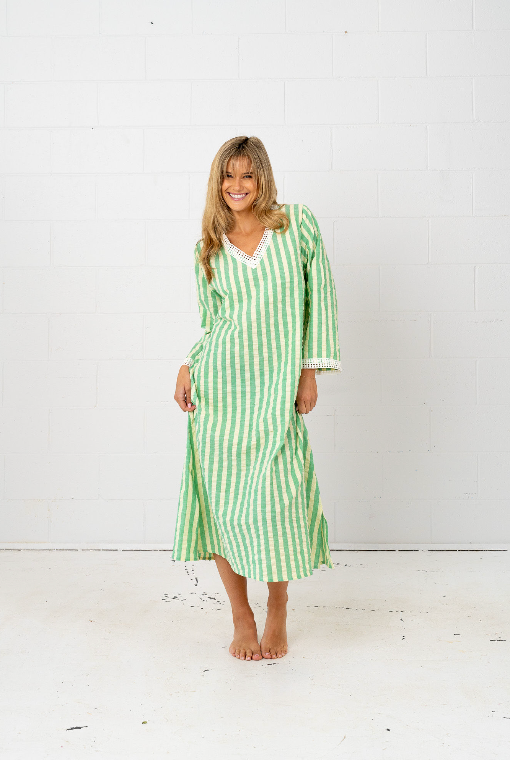 Sail into summer with the Marnie. Large seersucker 100% cotton & classic stripes. Maxi chic, perfect for beach to bar.