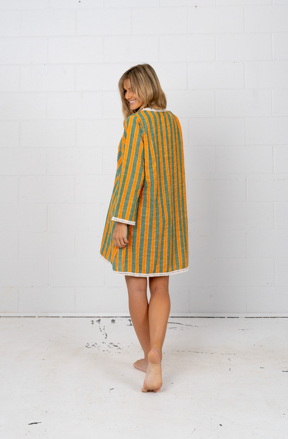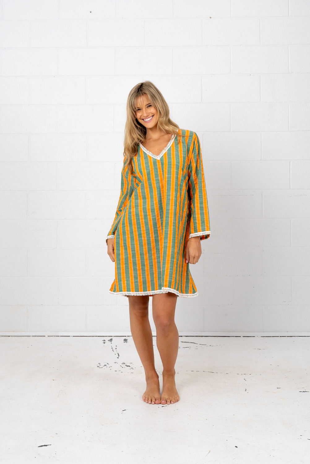 Marnie: Your summer muse. Luxe cotton-linen blend, nautical stripes. Effortless midi chic, beach to brunch.