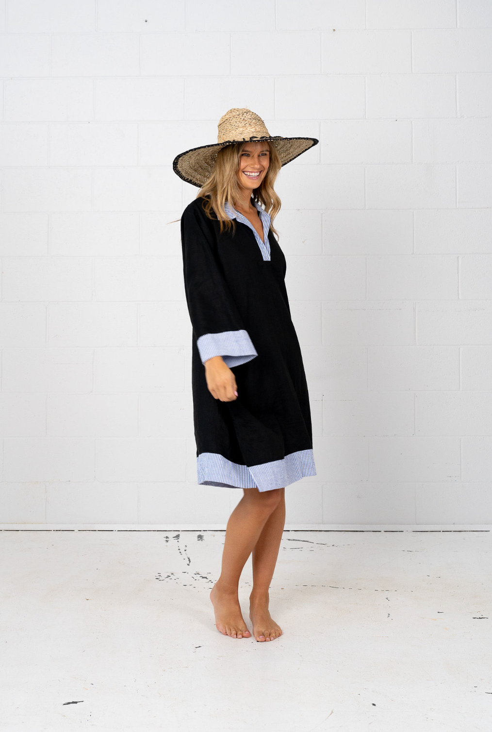 Effortlessly chic and perfect for sun-kissed days, the Sandy Dress is your new summer staple. This breezy maxi features a flattering paper bag fit, crafted from 100% linen for ultimate comfort. Delicate cotton trims add a touch of charm. Style with a belt for a cinched effect.