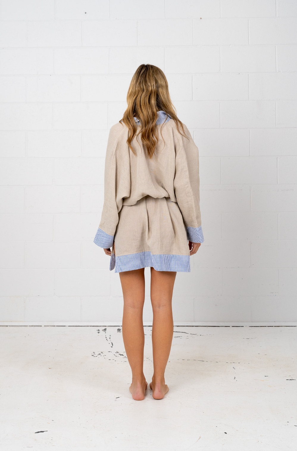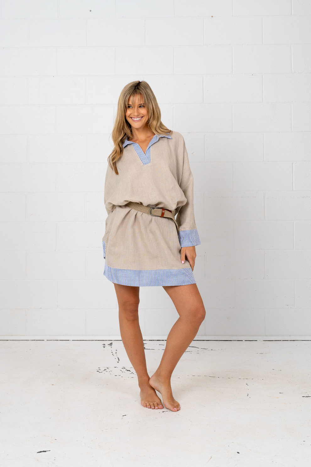 Effortlessly chic and perfect for sun-kissed days, the Sandy Dress is your new summer staple. This breezy maxi features a flattering paper bag fit, crafted from 100% linen for ultimate comfort. Delicate cotton trims add a touch of charm. Style with a belt for a cinched effect.